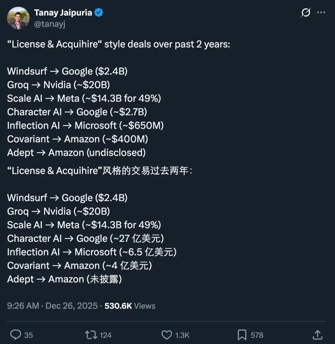 通过 200 亿美元的对价,「资产收购 + 人才招募」的非典型方式(官方称为达成「非独家许可协议」),英伟达终于将这家 AI 推理芯片领域最强劲的对手收入麾下,同时也避免了反垄断。